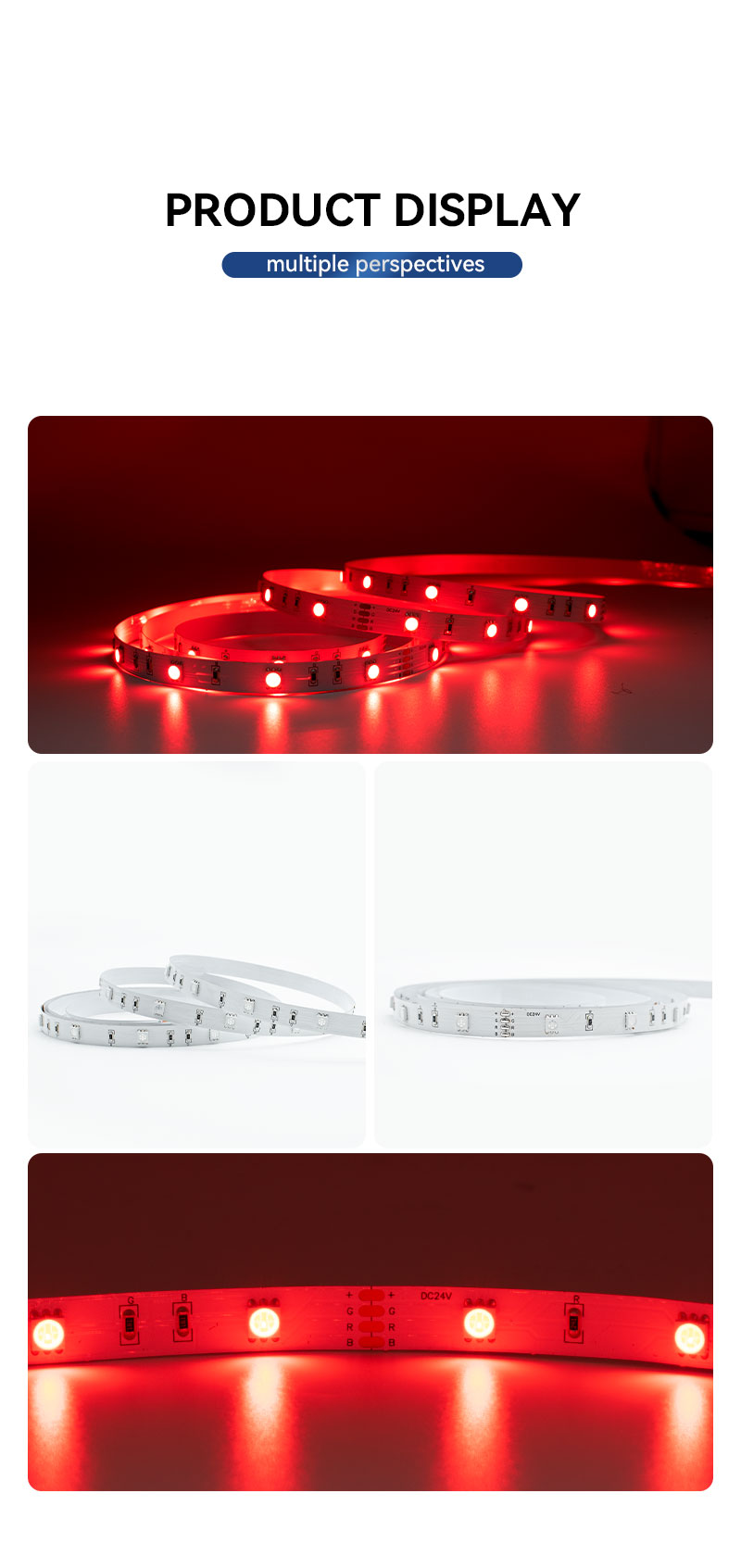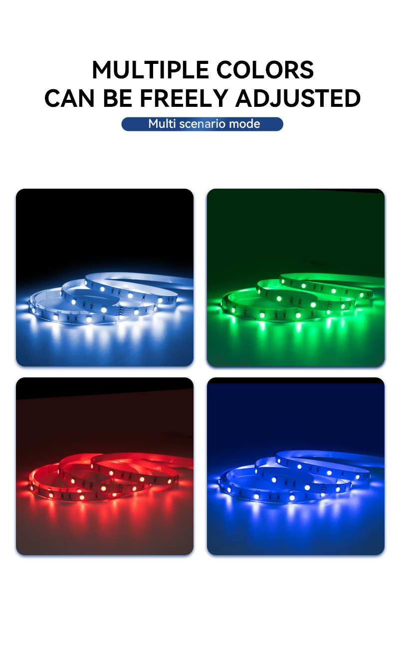 이것 24V RGB 플렉시블 LED 스트립 이 제품은 건축 조명, 상업용 디스플레이, 소매점 간판, 분위기 조명 및 이벤트 장식을 포함한 광범위한 전문 분야에 이상적이며 실내외 환경 모두에 맞춤형 조명 솔루션을 제공합니다.