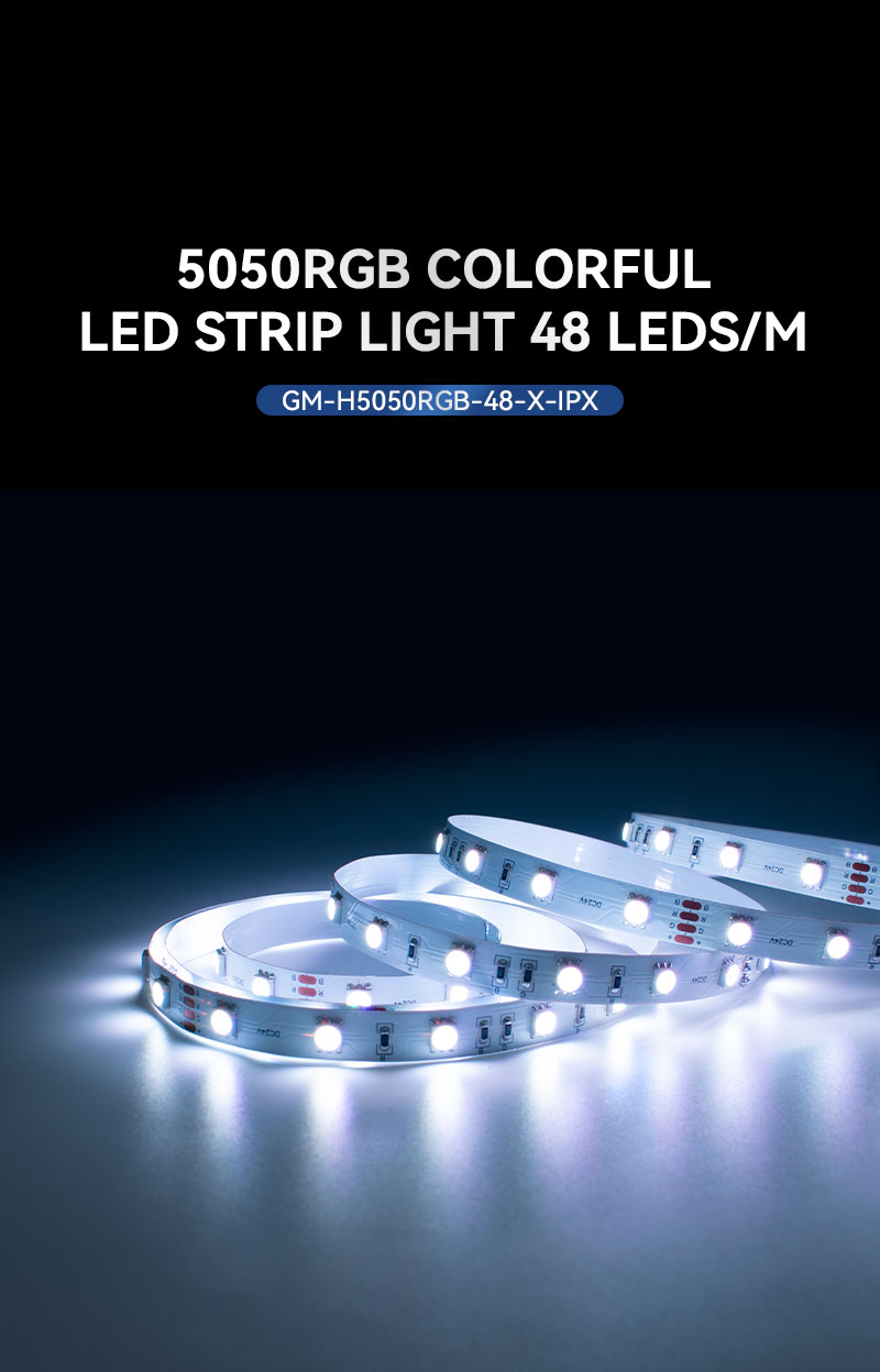 4824V 5050 RGB 컬러풀 LED 스트립, 미터당 LED 48개