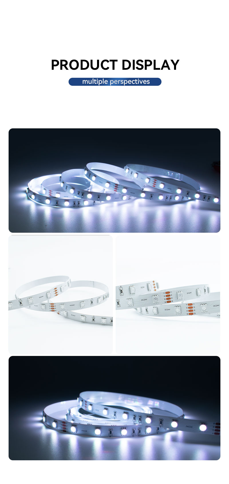 이것 24V RGB 플렉시블 LED 스트립 이 제품은 건축 조명, 상업용 디스플레이, 소매점 간판, 분위기 조명 및 이벤트 장식을 포함한 광범위한 전문 분야에 이상적이며 실내외 환경 모두에 맞춤형 조명 솔루션을 제공합니다.