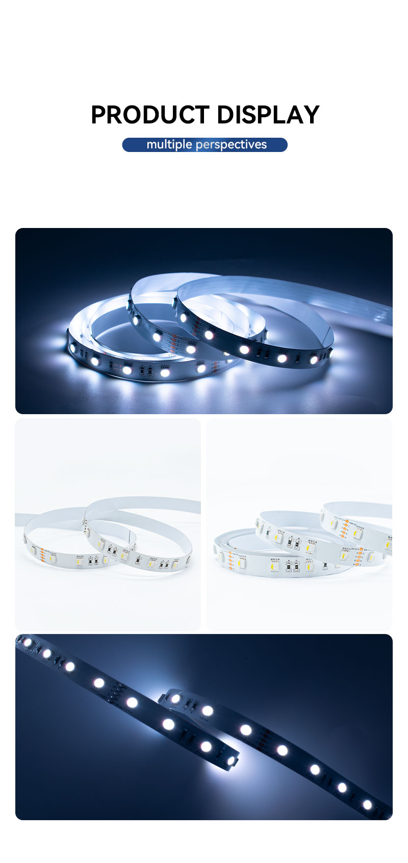 3. 유연하고 제어 가능함 완전한 밝기 조절 기능과 다양한 컨트롤러(RF, WiFi, Bluetooth, Zigbee)와의 호환성을 제공합니다. 수백만 가지 색상, 다이내믹 모드(그라데이션, 플래시)를 구현하며, Alexa 또는 Google Home과 같은 스마트 홈 시스템과 원활하게 연동하여 음성 제어가 가능합니다.