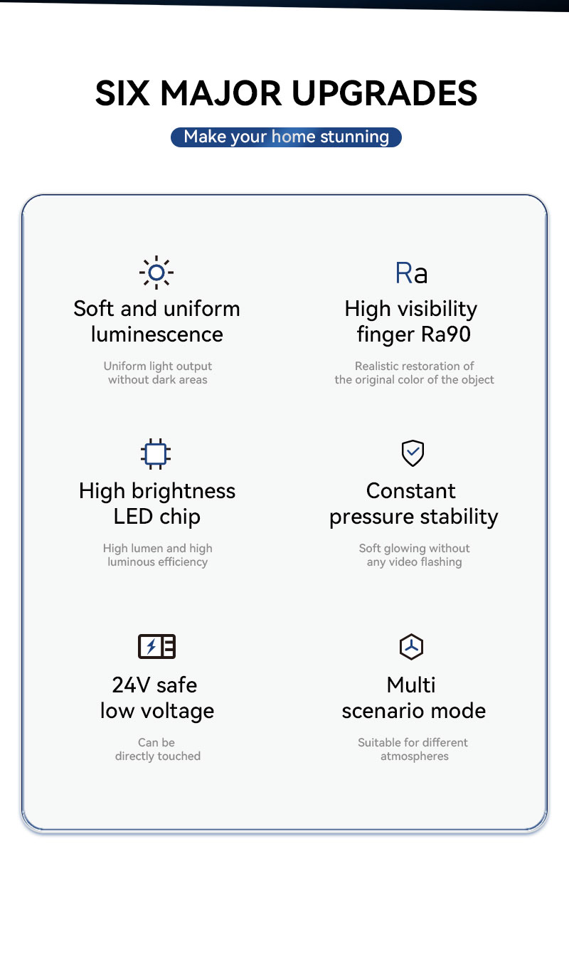 가정용 조명: 거실, 주방, 침실에서 분위기 조명이나 포인트 조명을 연출하기에 이상적입니다. 따뜻한 색온도, 중성색, 차가운 백색의 세 가지 색온도를 전환할 수 있어 다양한 조명 요구에 맞춰 사용할 수 있습니다.