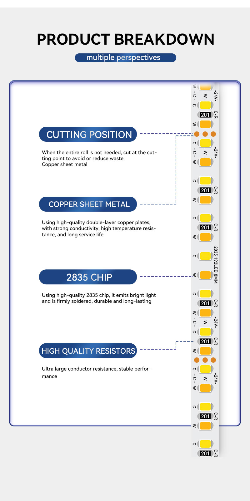 당사의 선형 조명 성능을 최적화하세요. 산업용 2835 LED 테이프 LM-80 테스트를 거친 LED 칩과 강화된 PCB 구조를 갖춘 이 제품은 까다로운 산업 및 상업 환경에서 탁월한 광속 유지력과 안정성을 제공합니다.